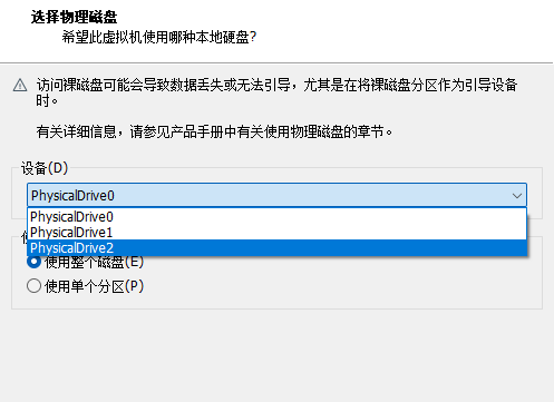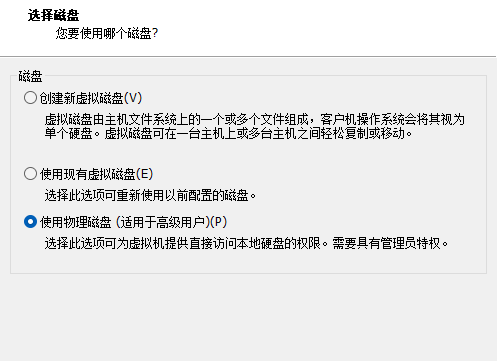 9. 这里是关键,选择第三个使用物理磁盘,也就是移动硬盘。