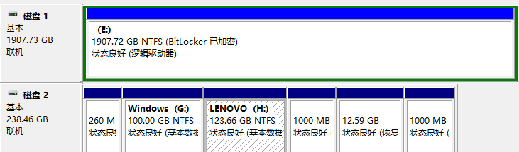 • 找到对应盘符来查看磁盘号,我这里是“磁盘2”