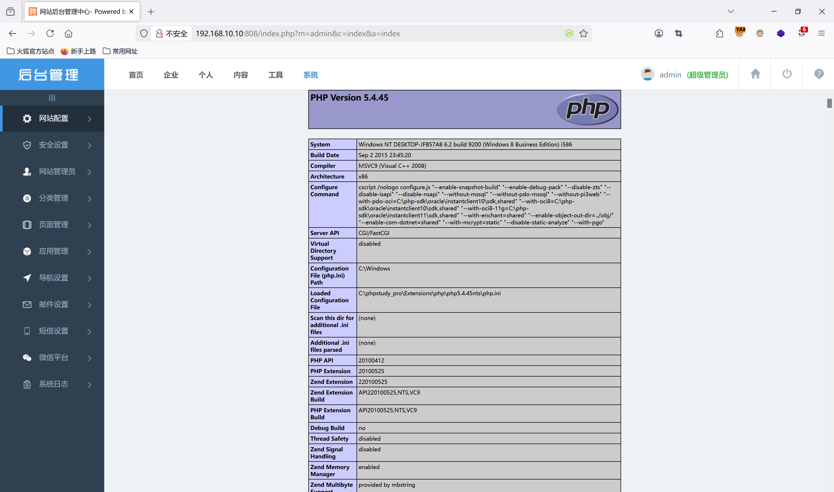 http://192.168.10.10:808/index.php?m=admin&c=index&a=login