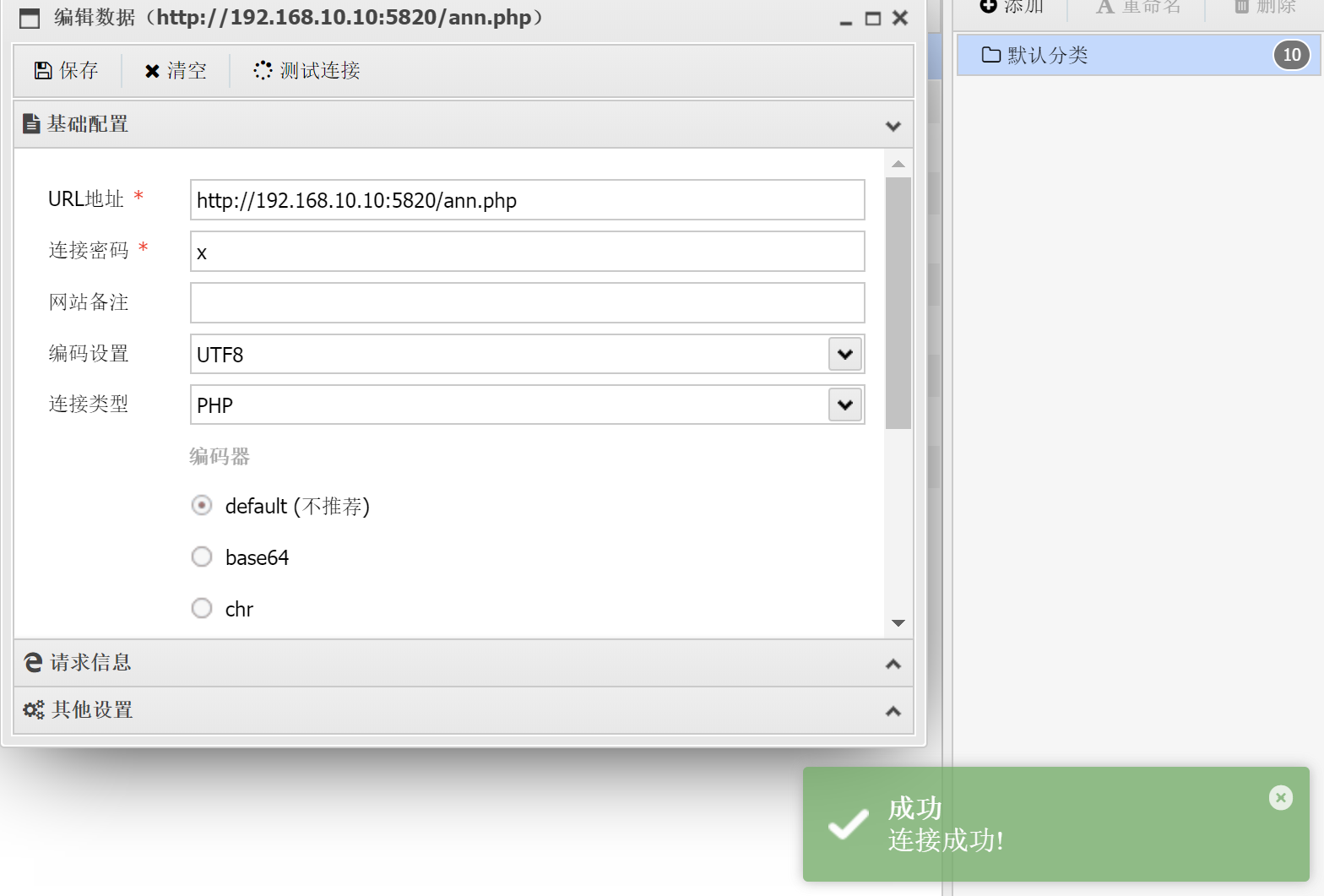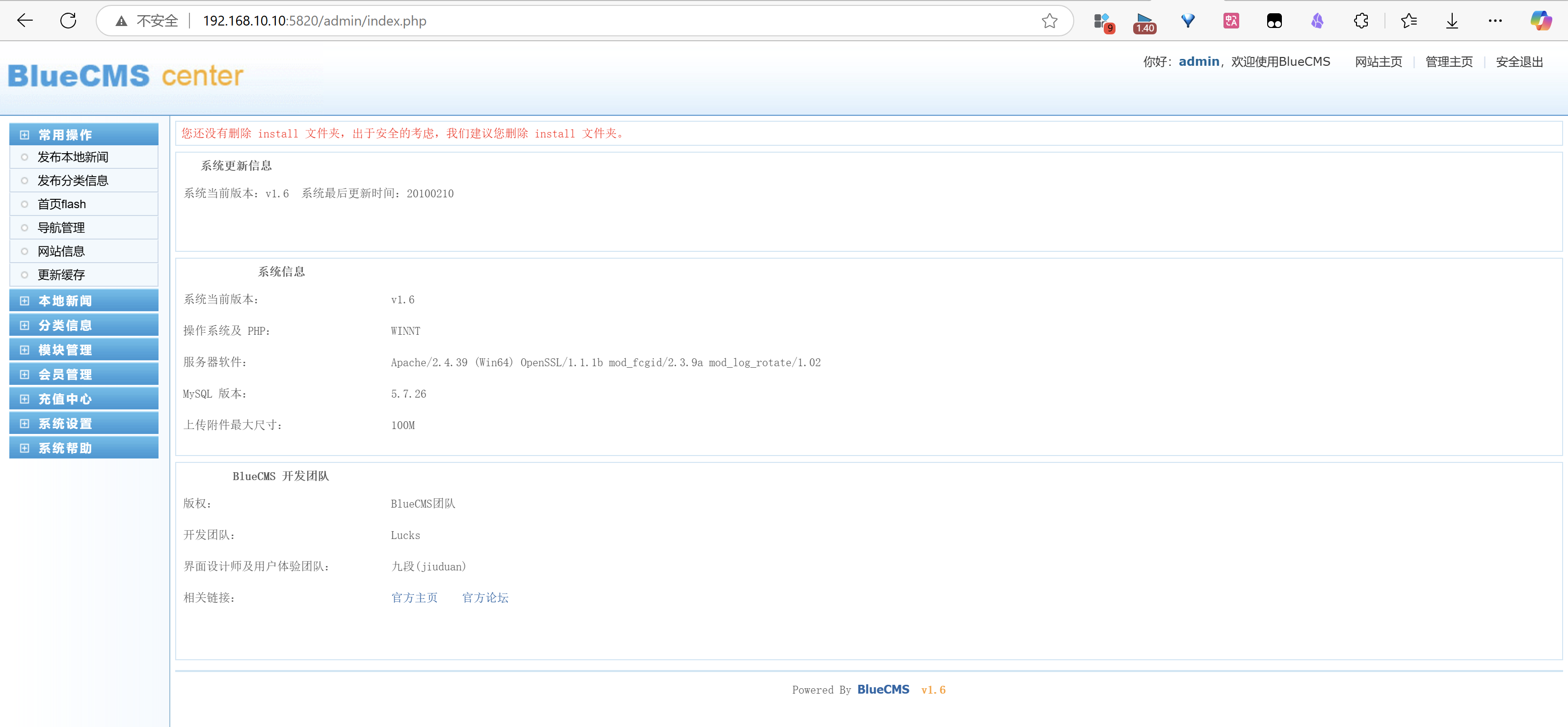 http://192.168.10.10:5820/admin,使用账号admin,密码admin123456,成功登录